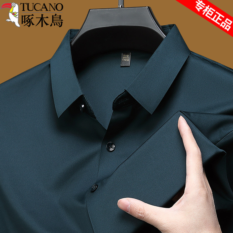 Woodpecker high-end seamless shirt men's spring and autumn style middle-aged anti-wrinkle and iron-free solid color shirt long-sleeved casual inch shirt men