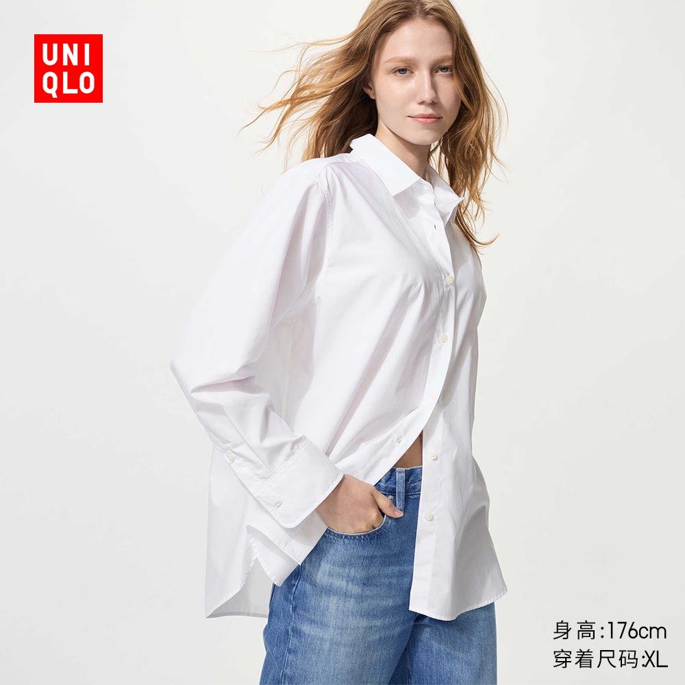 Uniqlo women's cotton shirt/long-sleeved shirt thin jacket commuter long-staple cotton new 479078