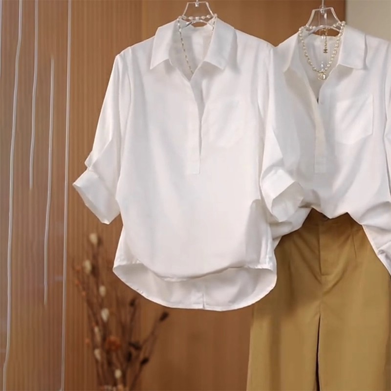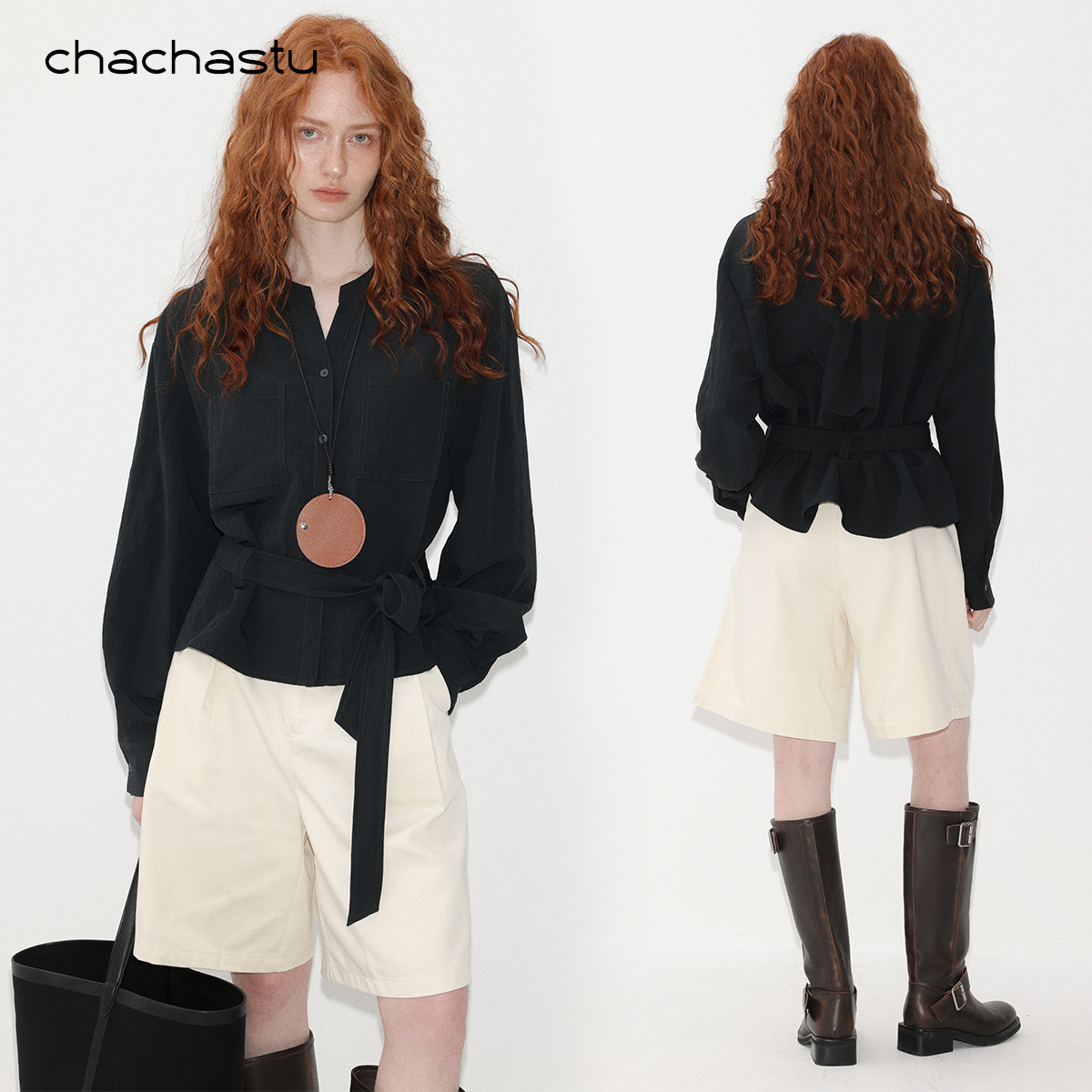 CHACHASTU temperament minimalist solid color versatile mid-waisted strap shirt women's fall and winter commuting slimming shirt top
