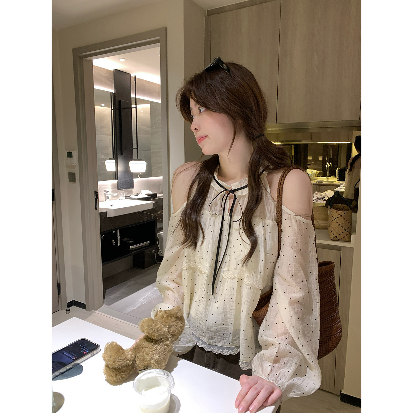 PtonUmi Saki Haruna off-the-shoulder polka dot shirt girl early spring beautiful outfit gentle doll shirt top dress summer