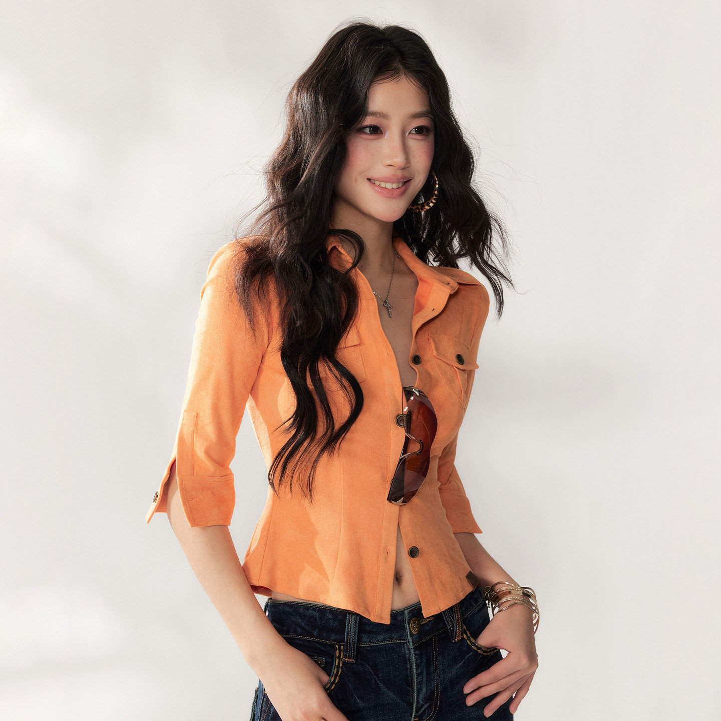 4muggle [Sun Yi's same style] suede shirt day mixed feeling half-sleeve cargo shirt hot girl top