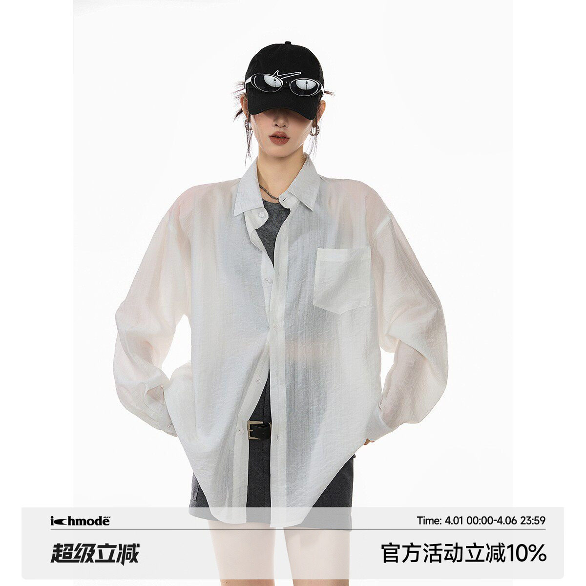 ICH MODE American white shirt women's summer loose physical sunscreen cover-up shirt jacket long sleeve top