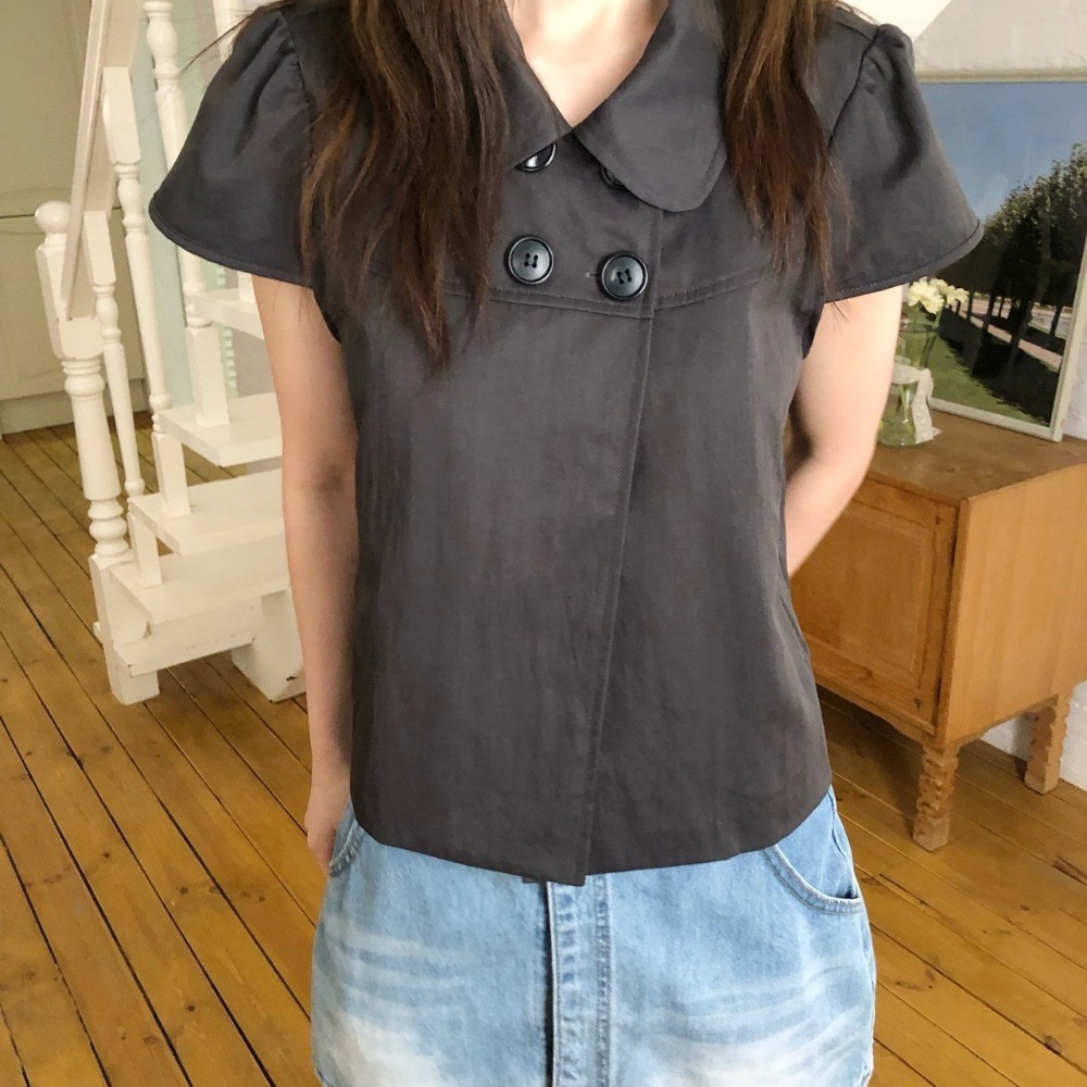 Up and on Korean summer gentle and cute versatile doll lapel large button bubble short-sleeved shirt top
