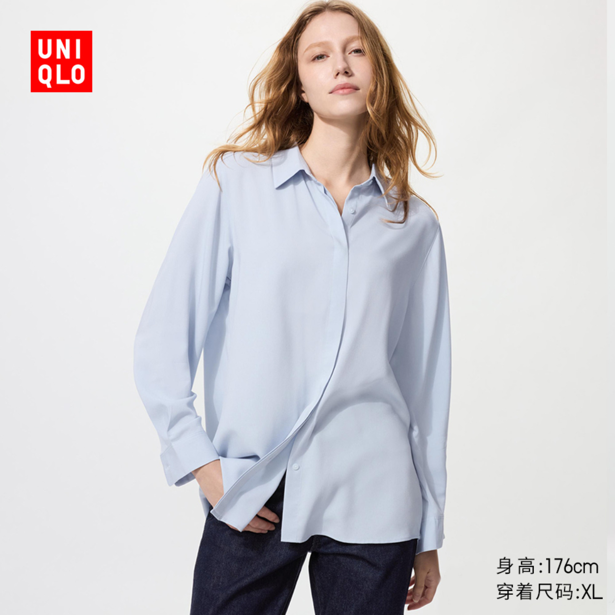 Uniqlo women's fancy shirt/long sleeve shirt is easy to care for and drapes 479071