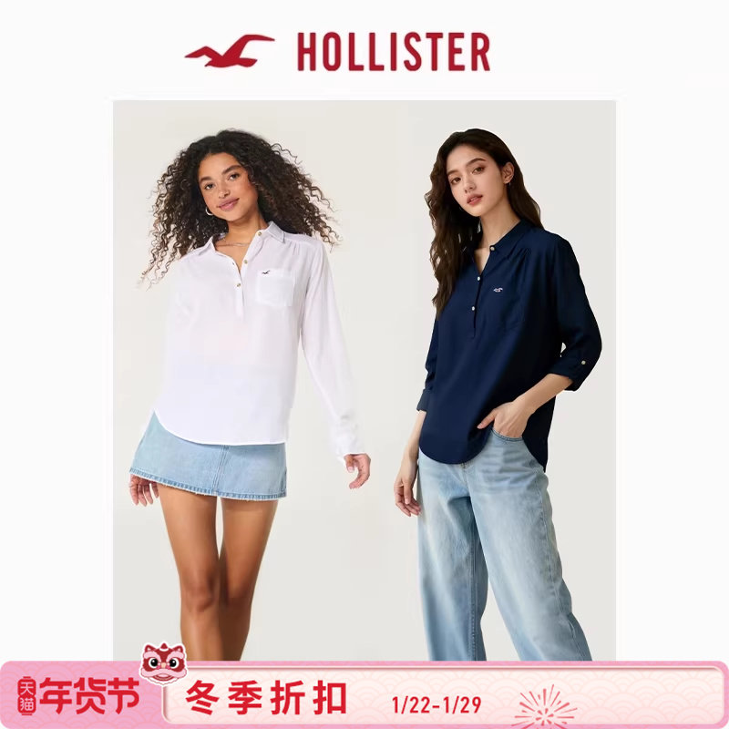 Hollister Little Seagull Pattern American Classic Three-Button Simple Versatile Shirt Women's 340-6043
