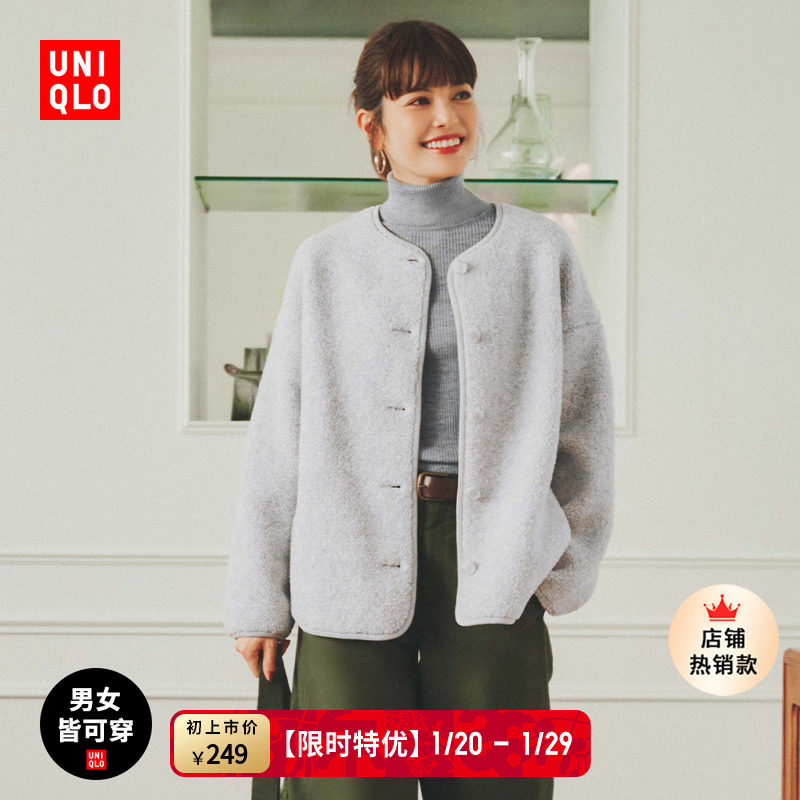 Uniqlo women's men's imitation lambswool fleece casual cardigan long-sleeved loose jacket winter new 479616