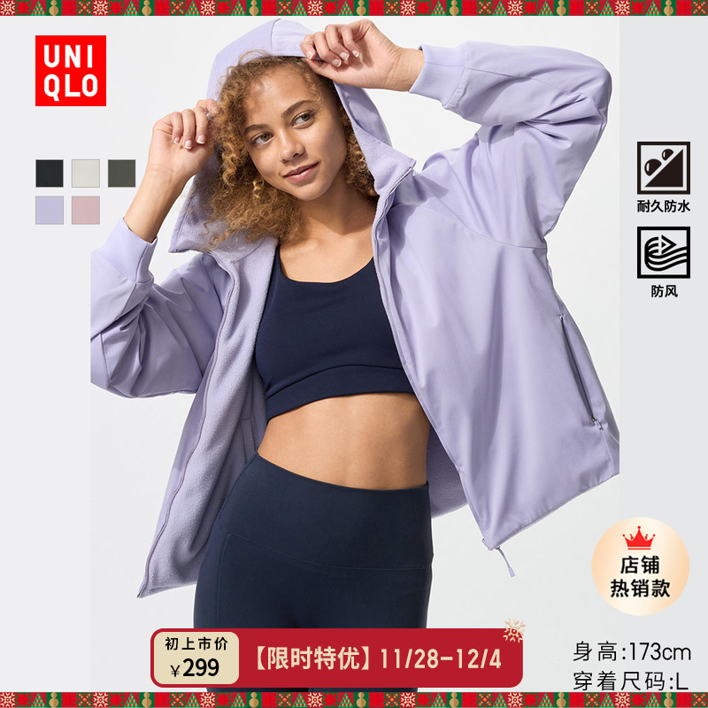 Uniqlo Women's Reversible Windproof Polar Fleece Zippered Hooded Jacket Outdoor Waterproof Winter New 479697