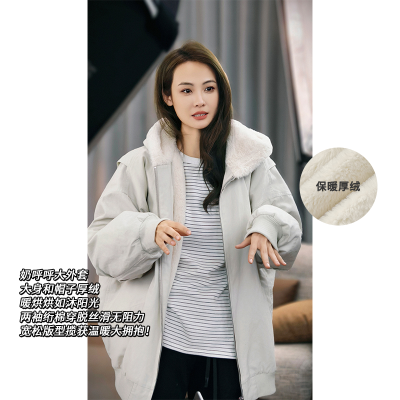 MEIYANG double leather milk jacket cotton honeycomb texture_thick fleece warm hooded sweatshirt