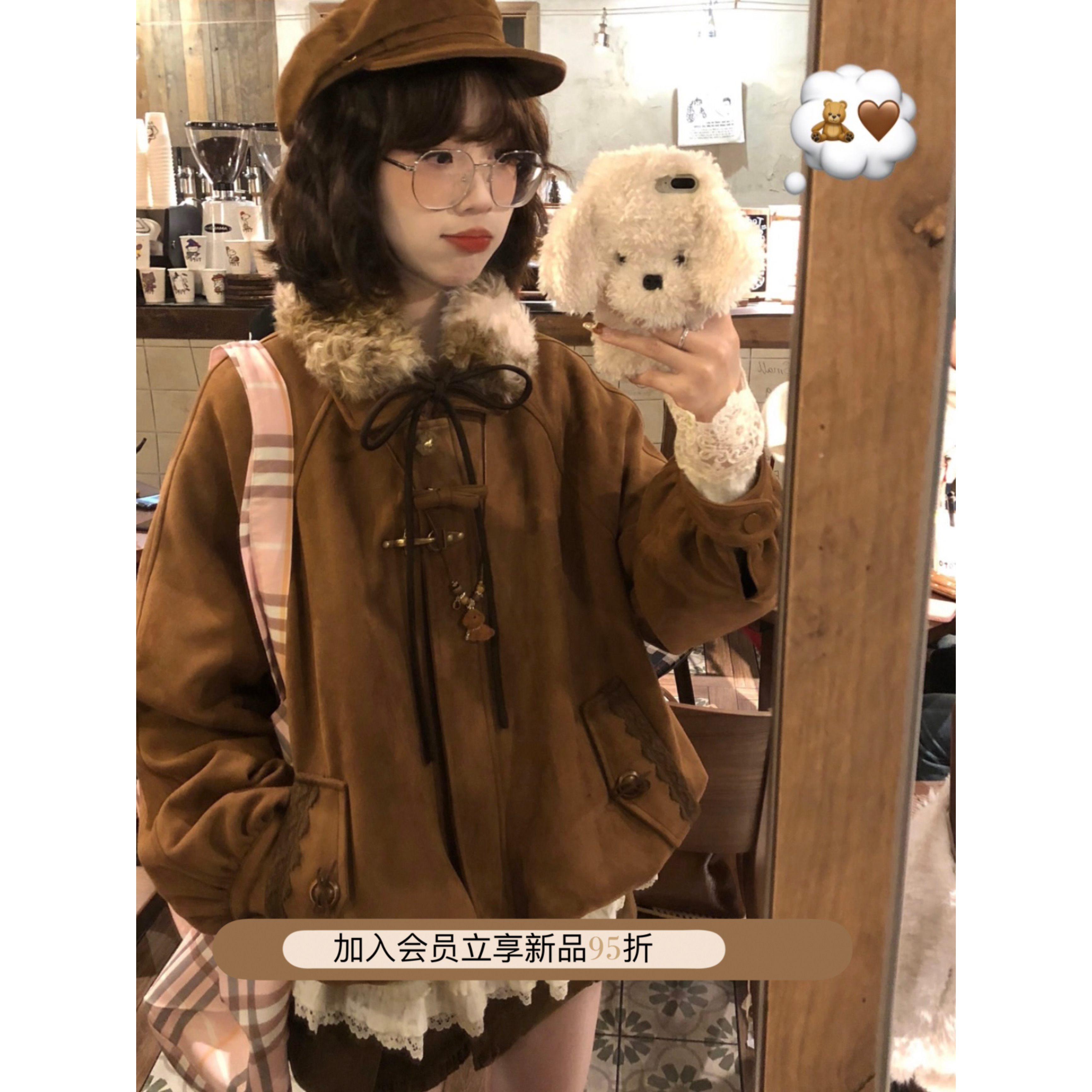 Maillard brown suede fur collar cotton jacket women's and men's autumn retro high-end short baseball uniform jacket