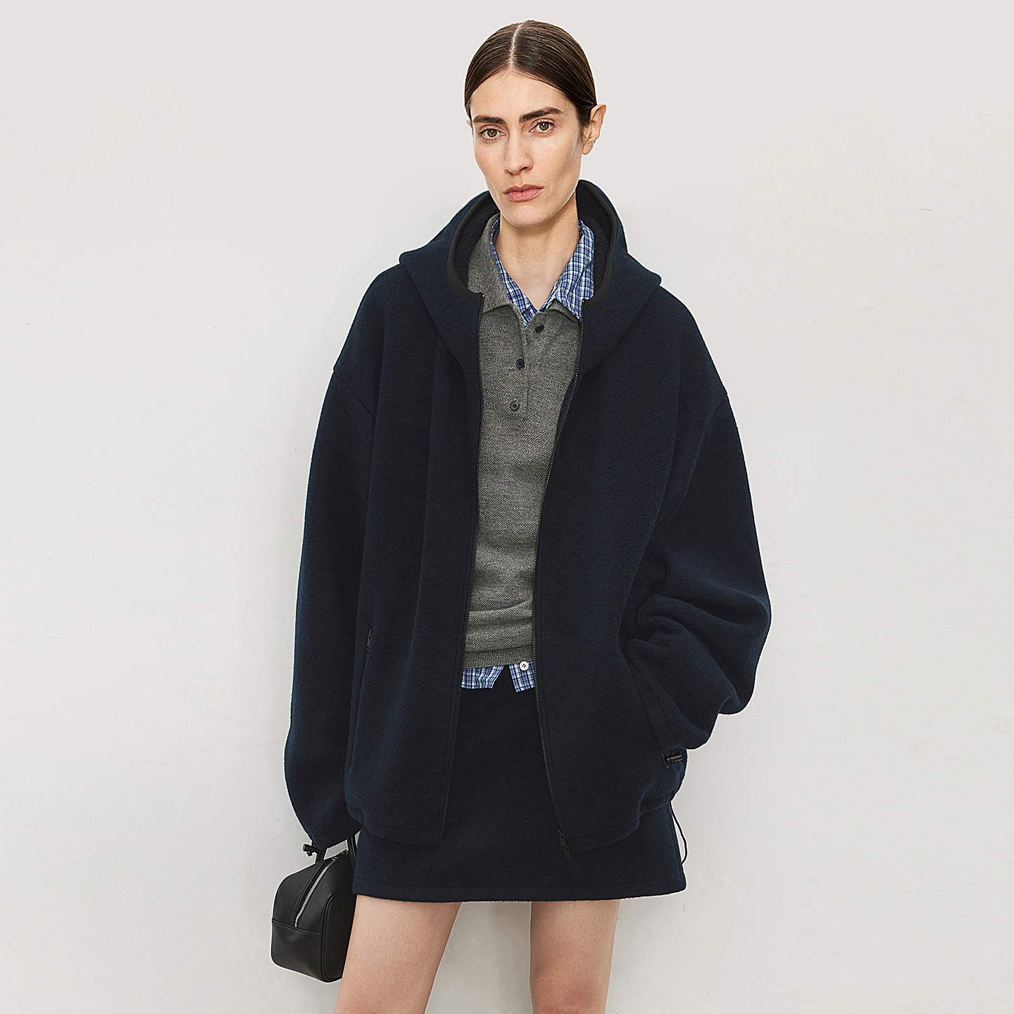 MUJI MUJI Women's Long Wool Fleece Zipper Hoodie Women's Polar Fleece Short Jacket Women's Winter