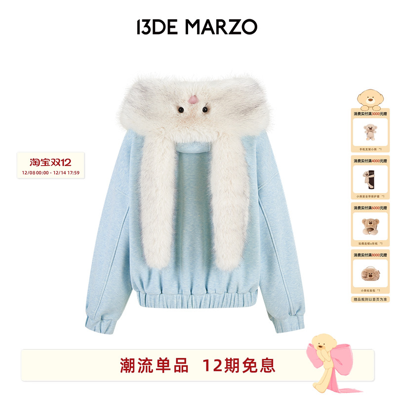 13DE MARZO Unisex Fall/Winter 2025 New Doll Detachable Fur Collar Hooded Sweatshirt Jacket