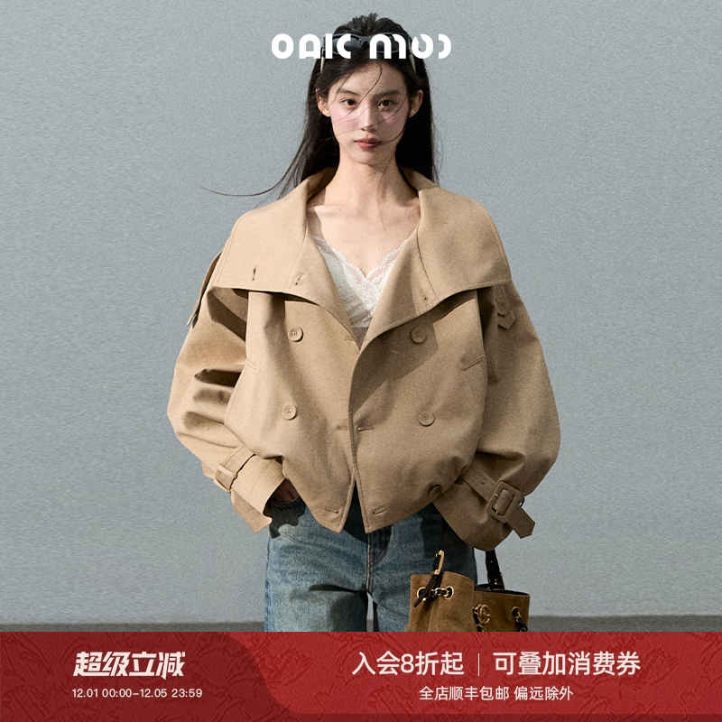 OAKMOO/ "Through the Oak Forest" Lyocell cotton stand-up collar trench coat jacket double-breasted short coat top for women