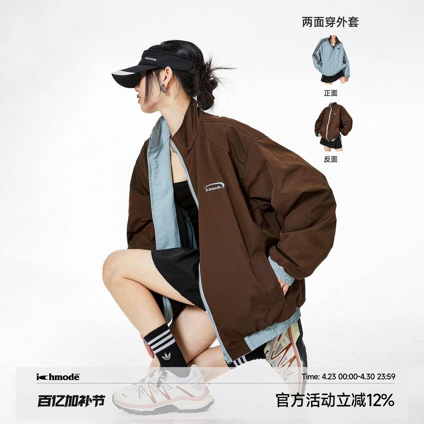 ICH MODE American Reversible Cardigan Jacket Women's Spring Loose Casual Sports Jacket Top 2026 New Style