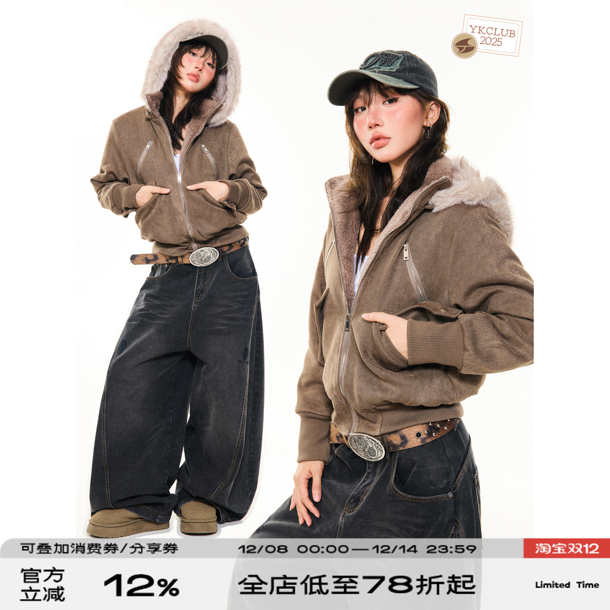 YOUNG STAGE Original American Retro Spice Girl Slim Jacket Women's Winter Thickened Plush Liner Short Jacket