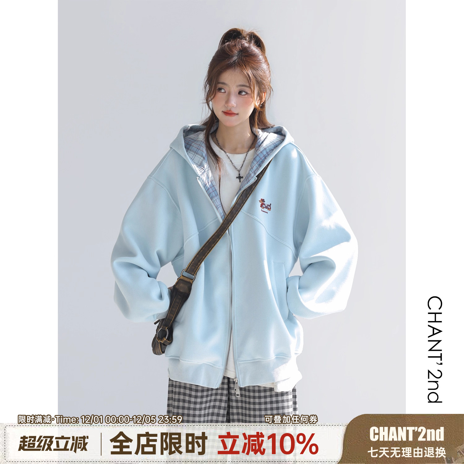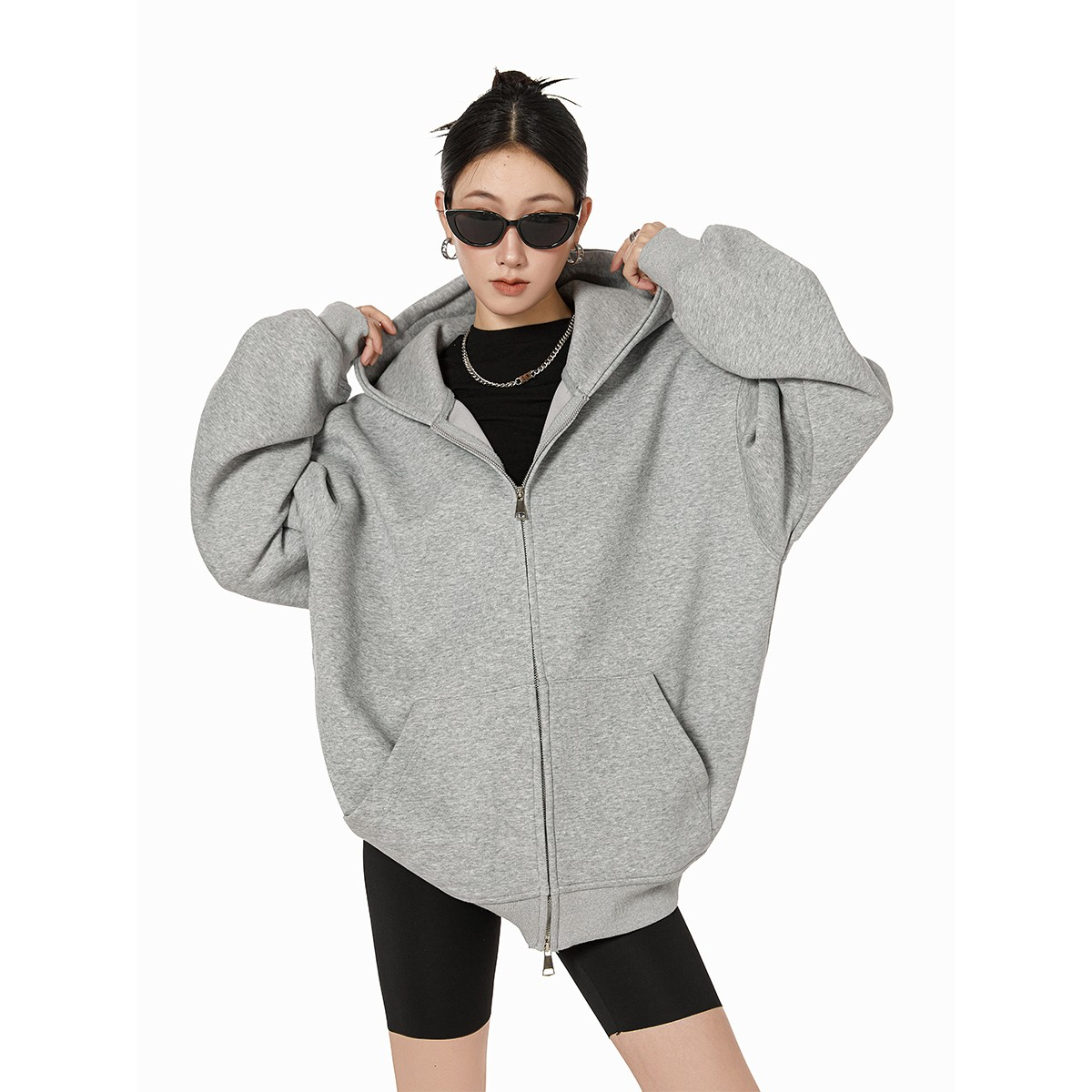ICH MODE American Heavy Gray Sweatshirt Jacket Women's Fall and Winter New Loose Hooded Zipper Cardigan Top