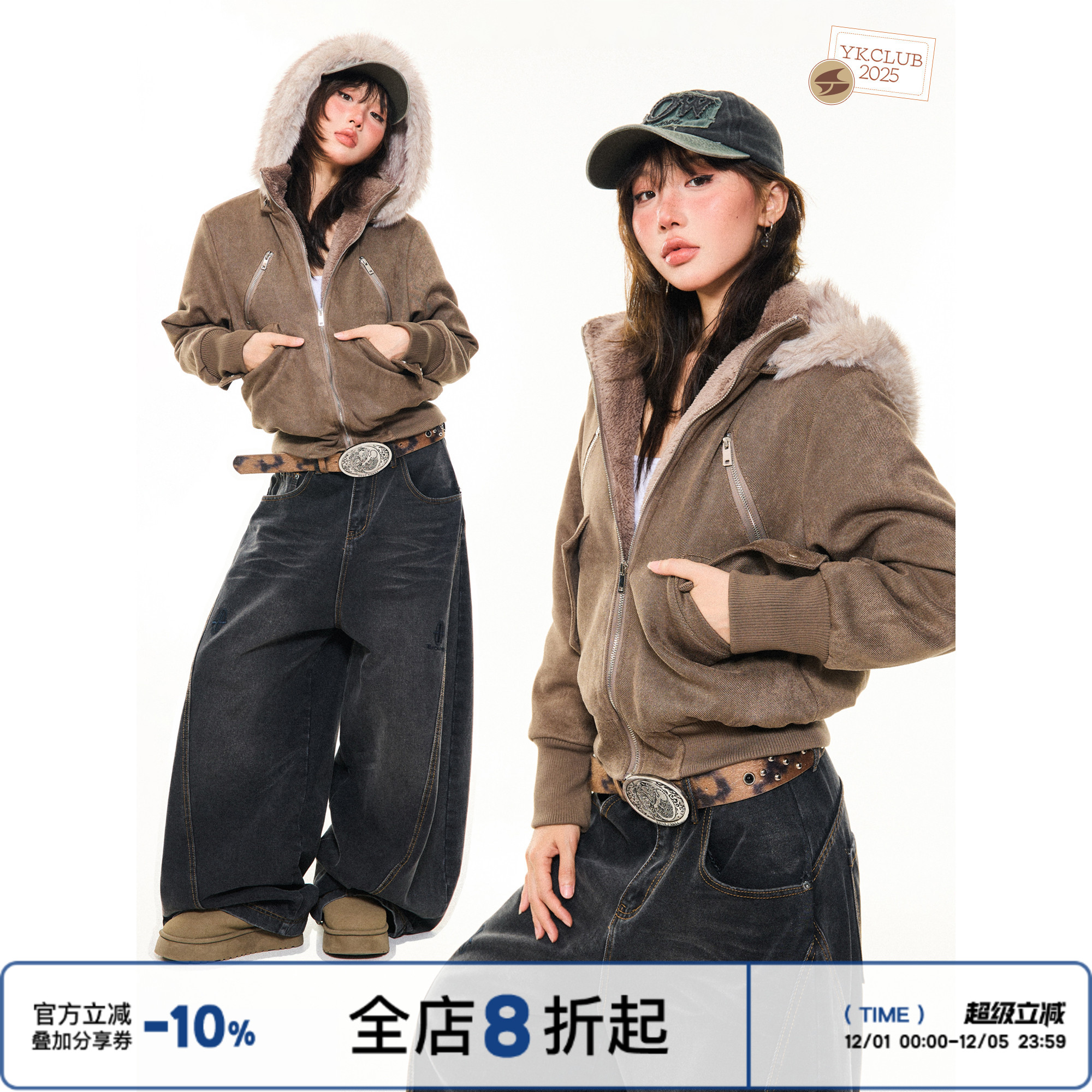 YOUNG STAGE Original American Retro Spice Girl Slim Jacket Women's Winter Thickened Plush Liner Short Jacket