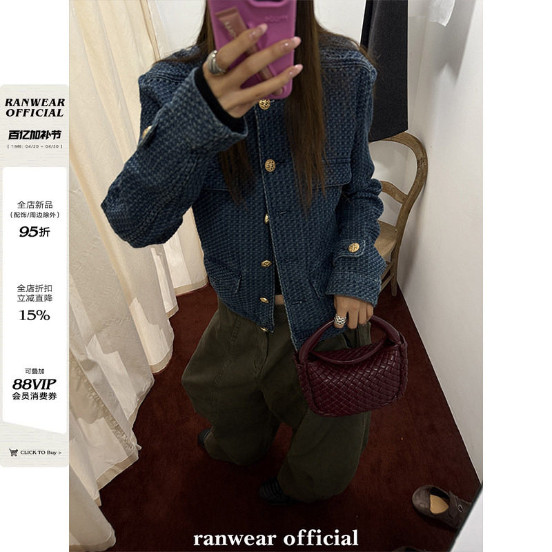 Ranwear is the king of popularity! Old money style niche retro denim jacket short stand-up collar jacket