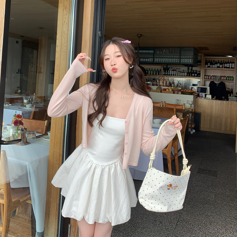 Kendou has the same style of hot girl Xiao Kan shoulder top, women's spring and autumn sundress, cardigan and sunscreen right-angled shoulder shawl cover-up