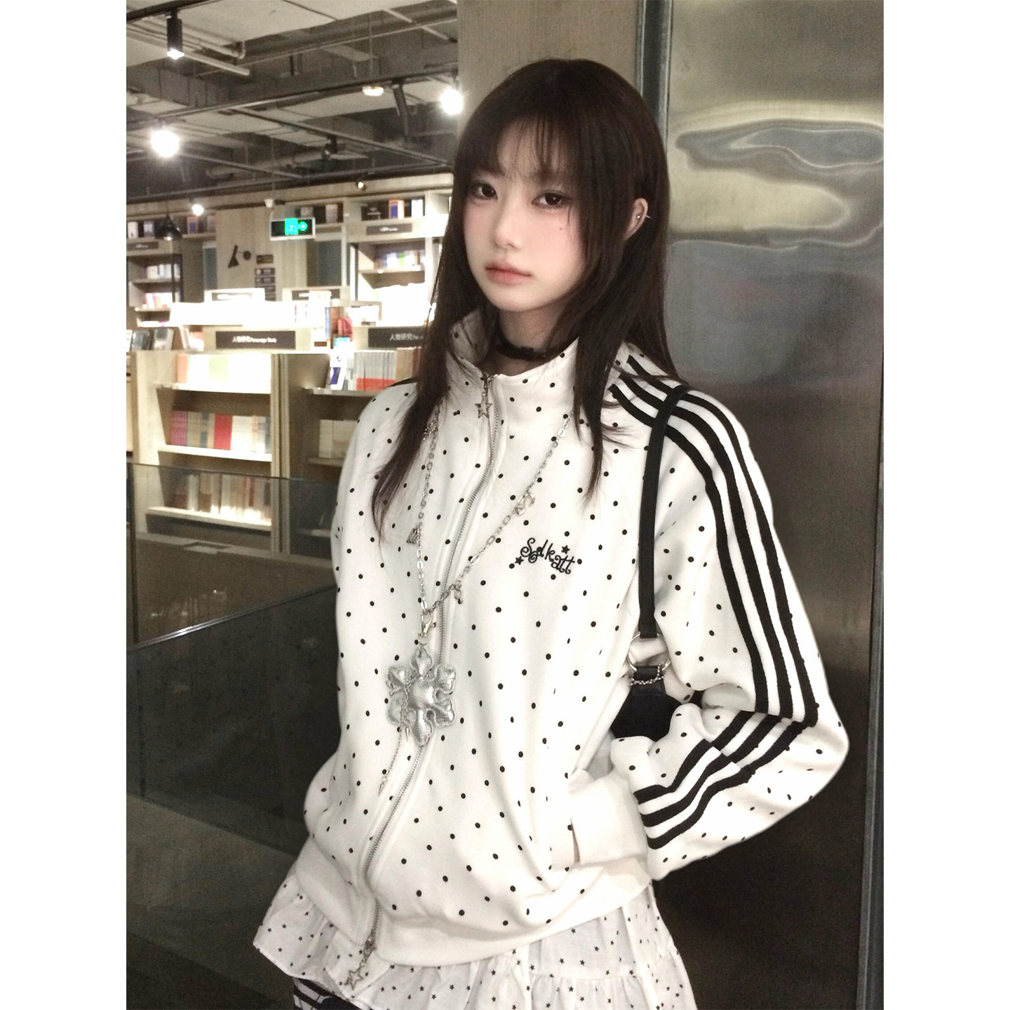 Japanese polka dot jacket women's spring new JK daily supply sports stand-up collar sweatshirt cardigan Y2K light Asian style top