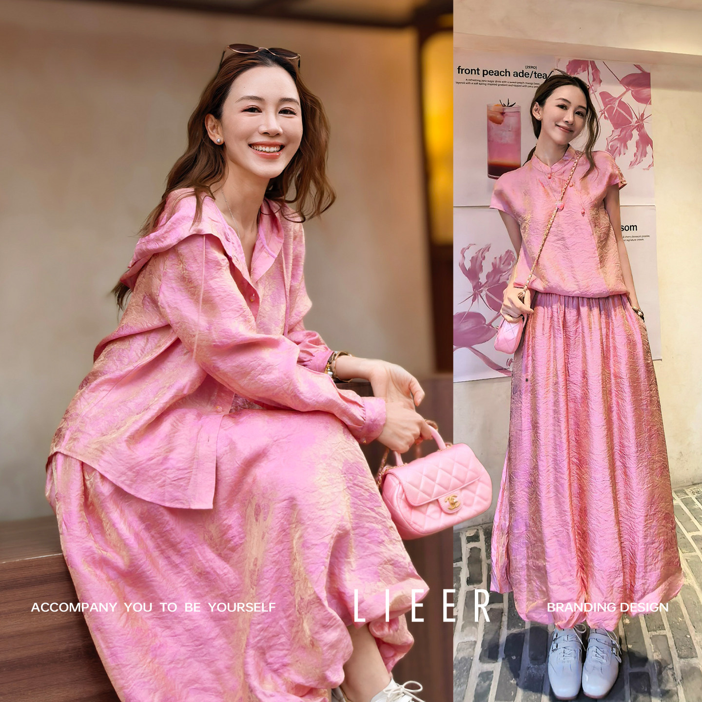 LIEER "Floating Pink" replica of Floating Brocade and Human Silk Jacquard Oriental Elegance Series Shirt Skirt