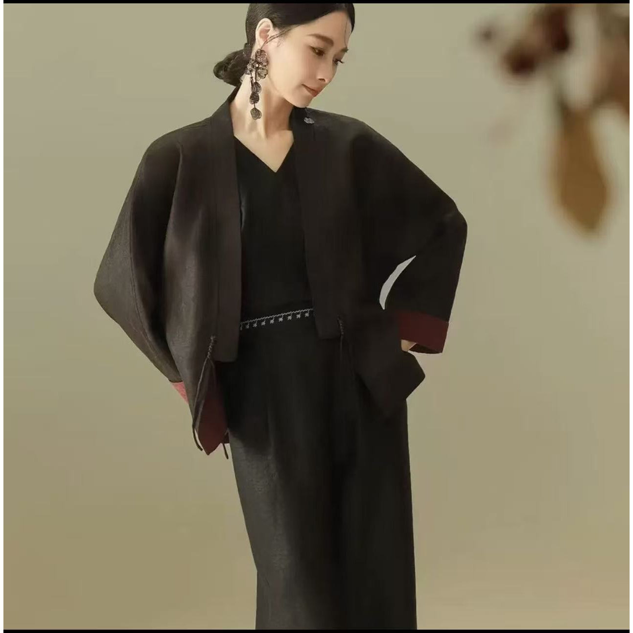 Sanji Black Flower [Jade Brocade] National Style New Chinese Top Early Autumn Jacket Women's Spring and Autumn 2024 New Style is super good-looking