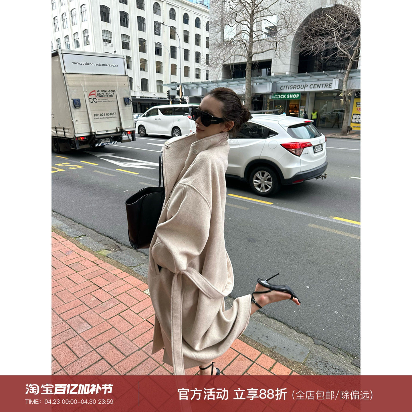 0122stepll Auckland Past 100 Sheep wool coat women's loose apricot long stand-up collar woolen coat