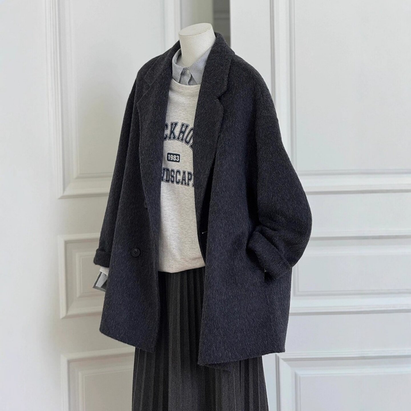 Deep winter gray woolen coat women enter winter 2026 The new woolen jacket is unique and super good-looking and thickened