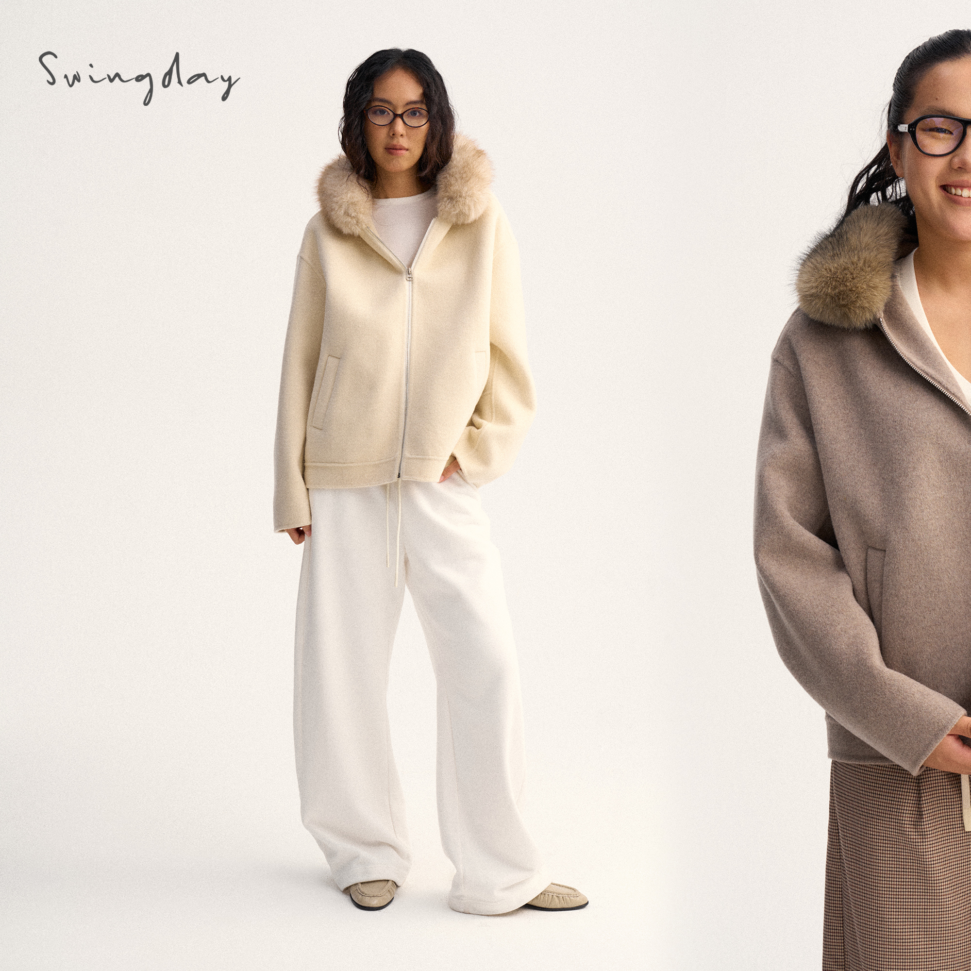 77store 100% wool reversible wool coat women's 2025 new small high-end cashmere woolen jacket