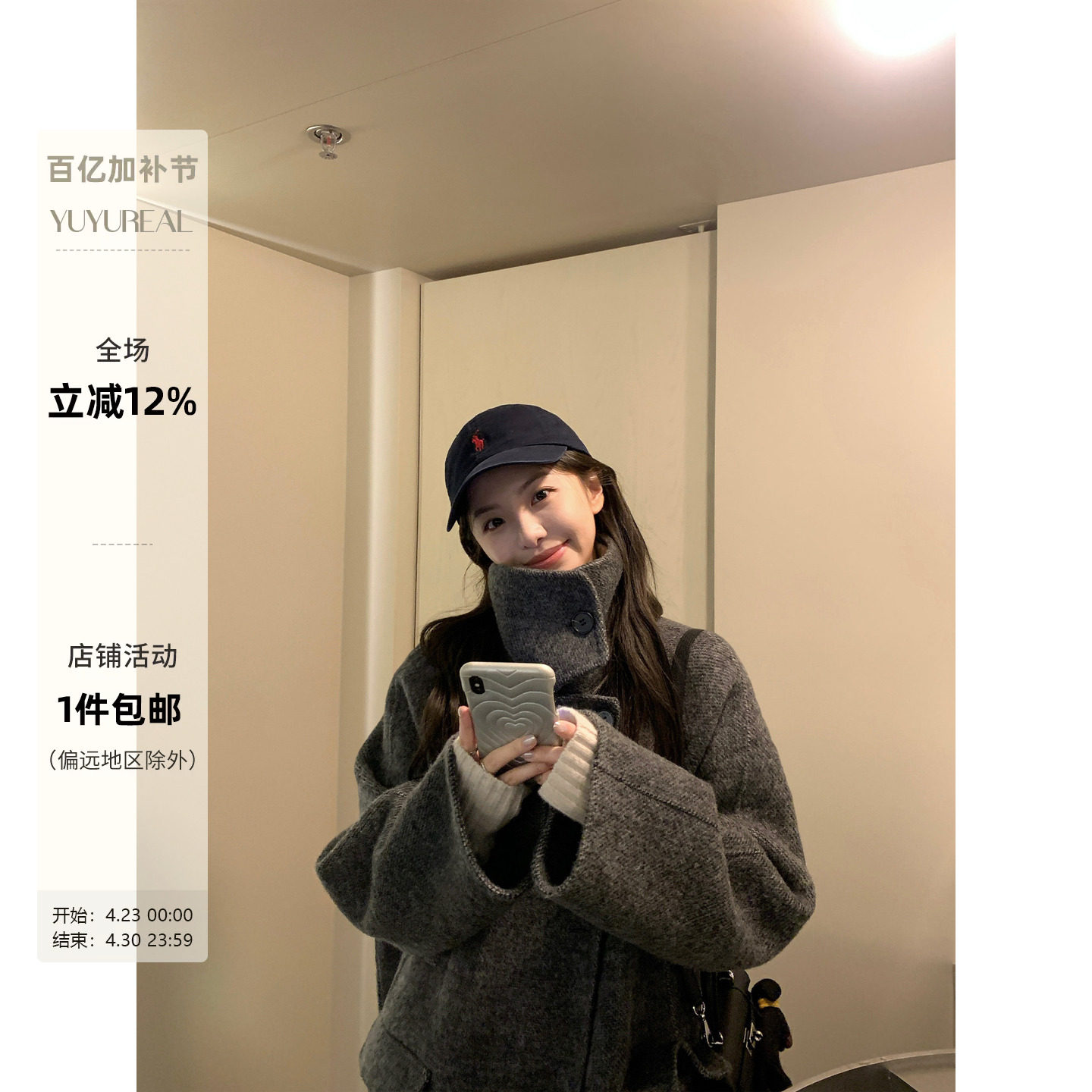 YUYUREAL annual return! Good fit relaxed stand-up collar wool coat comfortable temperament Korean jacket for women