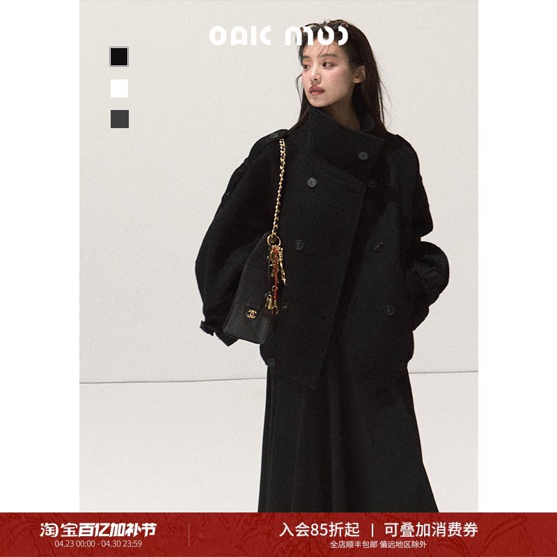 OAKMOO/"Through the Oak Forest" Winter heavy wool silhouette stand-up collar wool coat cropped woolen coat
