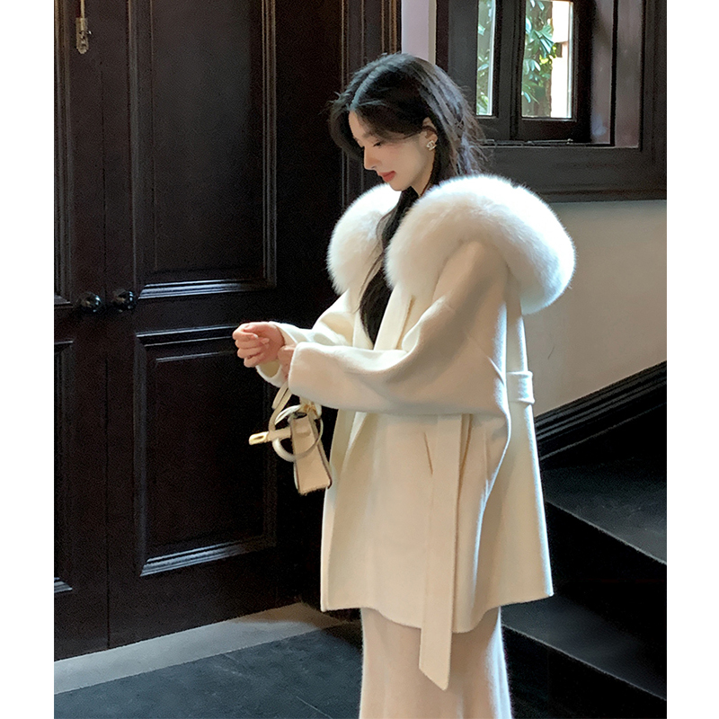 White recoverable cashmere cape coat women's 2025 autumn/winter new high-end hooded fox wool wool jacket