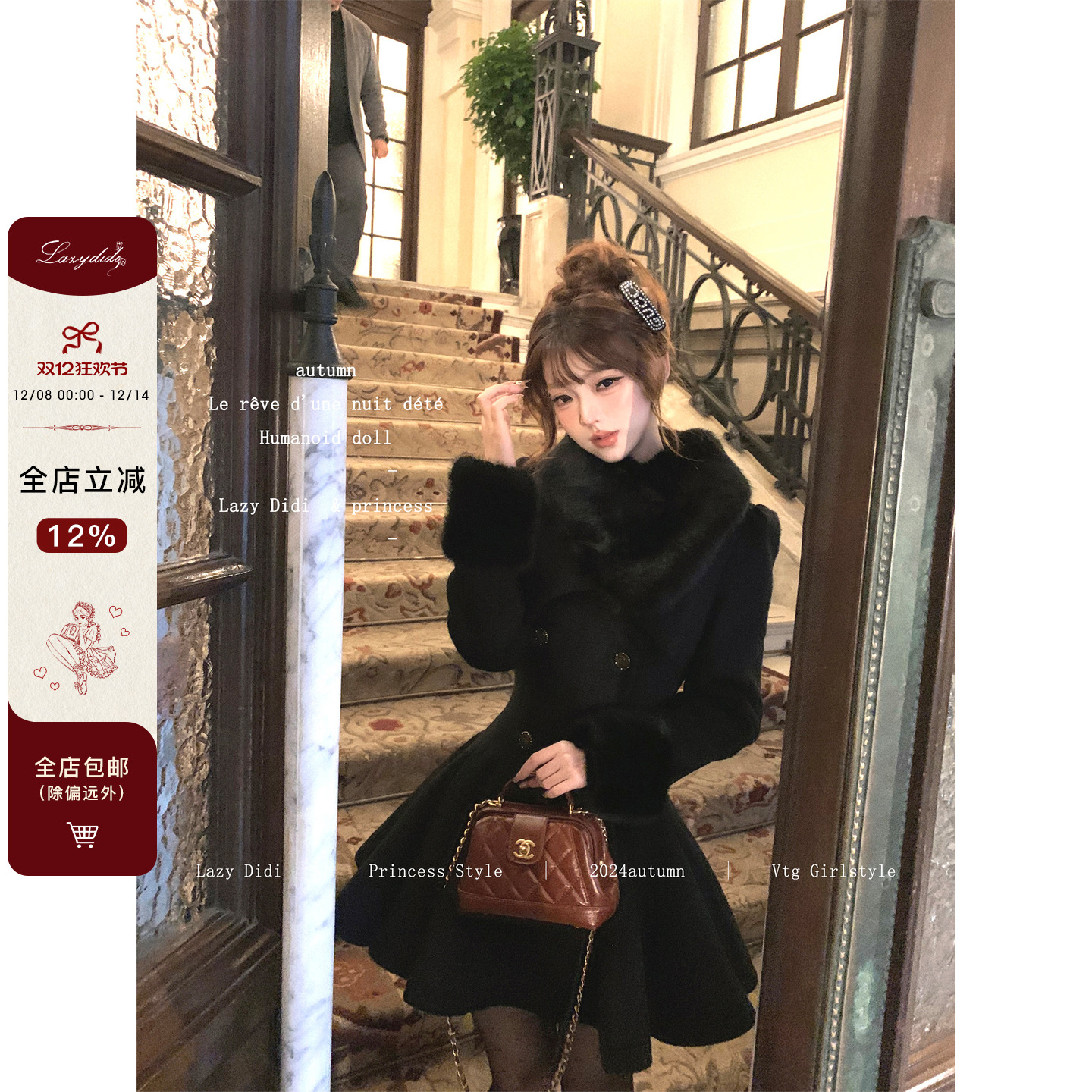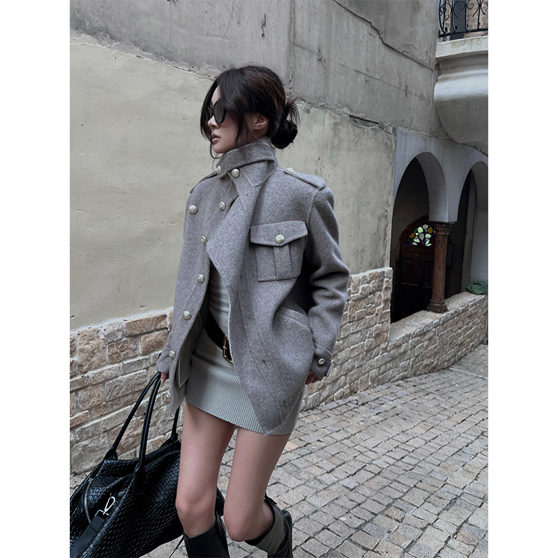 Lazy Didi Hepburn Prologue Waist Clip Cotton Tweed Coat Rich Daughter Thickened Woolen Jacket