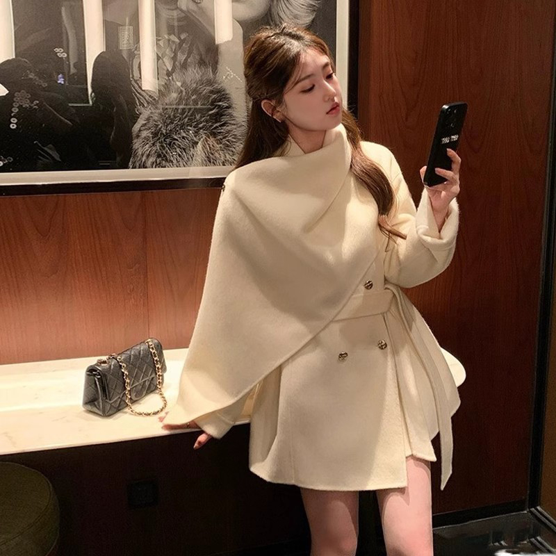 In winter, the daughter wears a high-end shawl, scarf, cape, woolen coat, gentle Korean temperament, woolen coat
