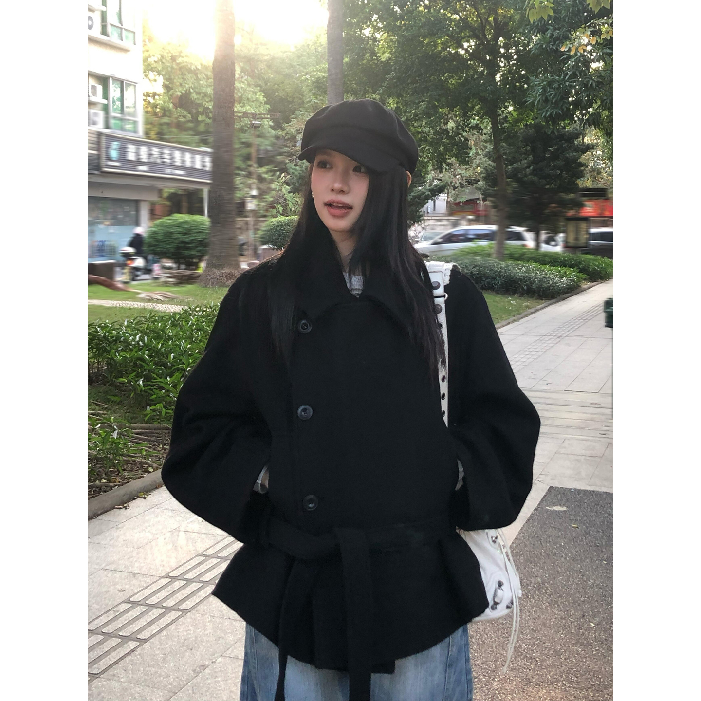 Unique and beautiful in the depths of winter, black woolen coats for women entering winter, 2025 new woolen jackets thickened and short