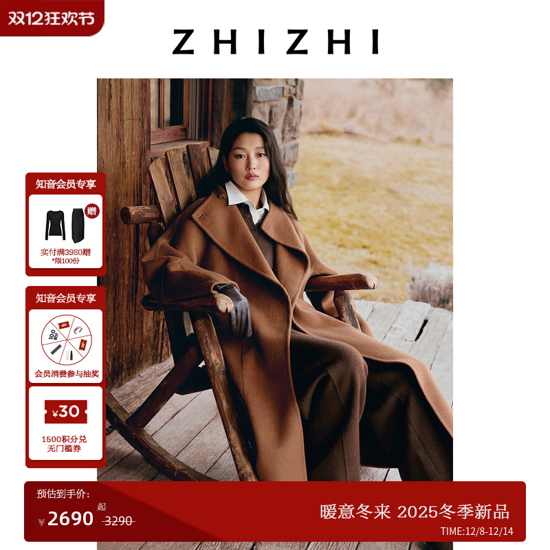[Star Same Style] Zhizhi Shihuxian Yak Wool Long Coat Jacket 25 Winter New Romance