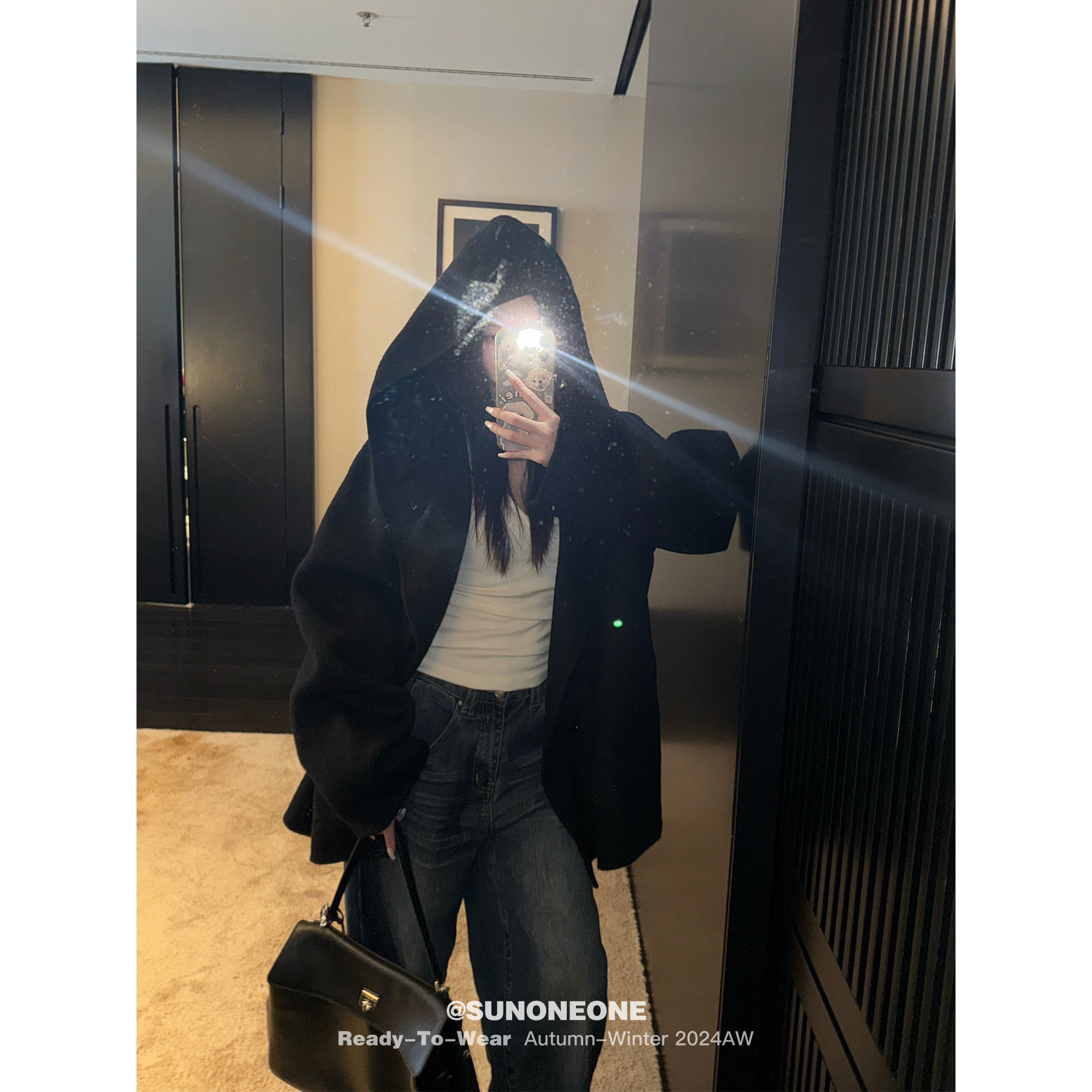 SUNONEONE100 wool reversible dweed coat women's hooded autumn/winter new loose hooded thickened warm coat