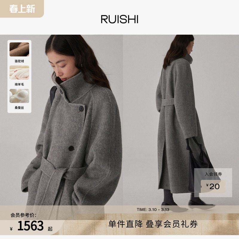 RUISHI Ruishi's heavy camel velp, mulberry silk wool, lazy two-collared gray woolen coat, autumn and winter coat women