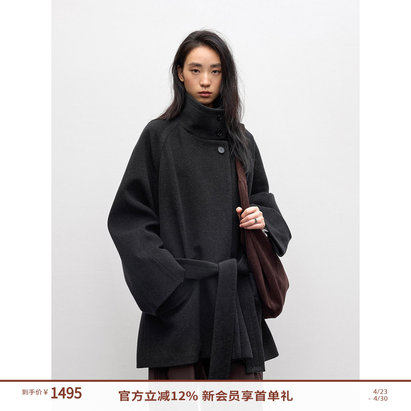 Oatmeal stand-up collar cropped woolen coat women's 2025 new small man giant good-looking winter cashmere woolen jacket