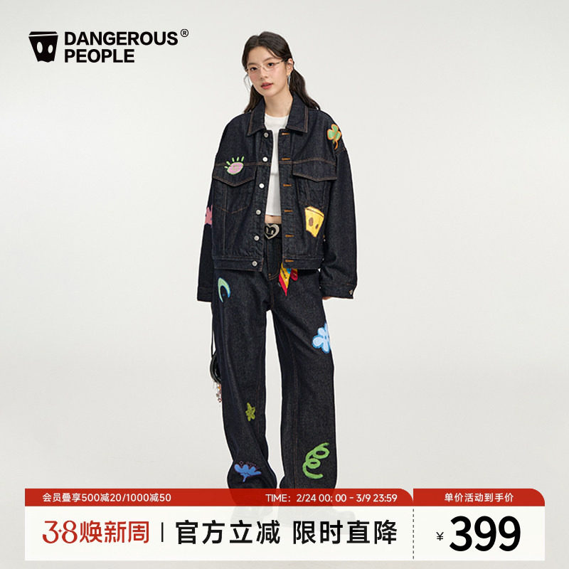 Dangerouspeople Xue Zhiqian dsp Childlike Denim Print Trendy High Street Loose Jacket Pants Suit