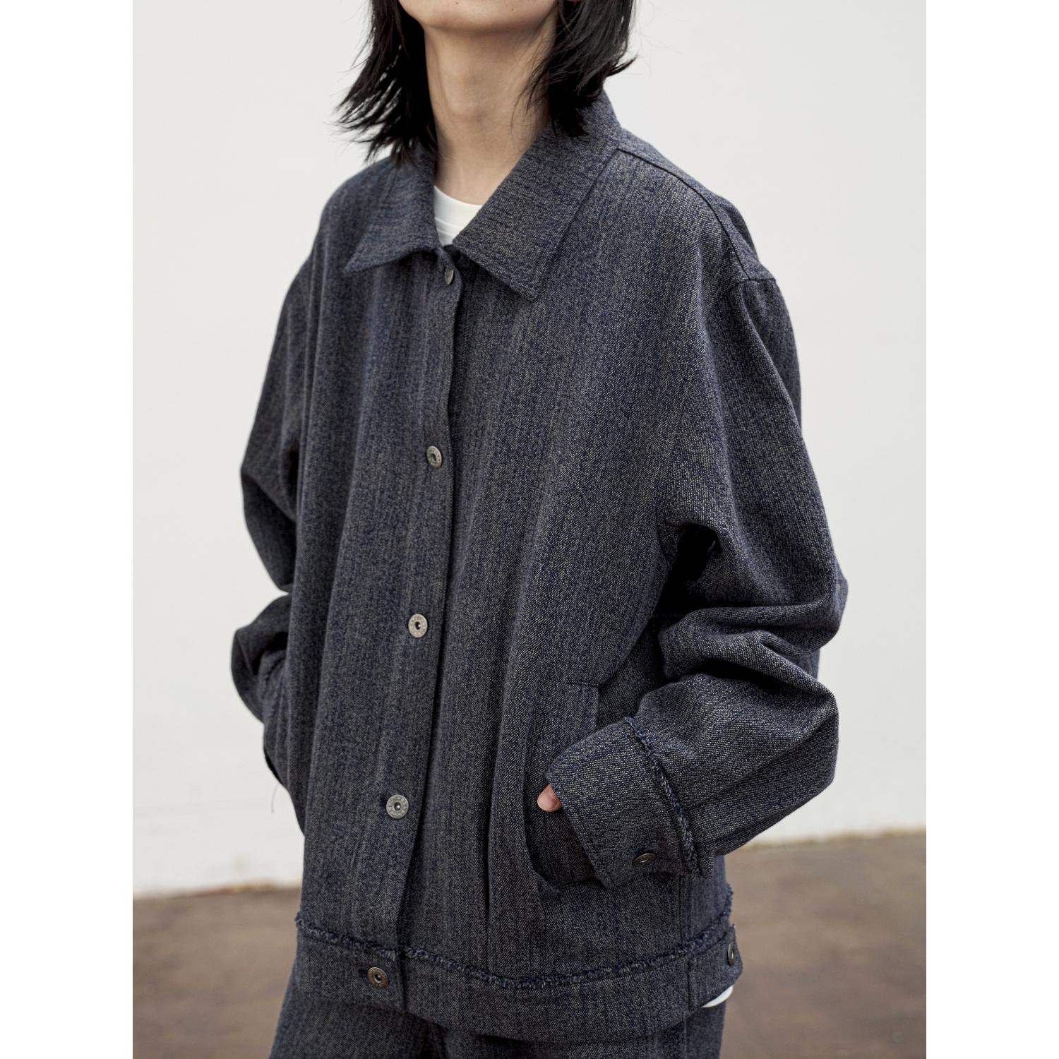 Cotton-cashmere suede feel stand-up collar jacket modified shoulder fitted jacket Nico in the same style as TERRAINCOGNITA