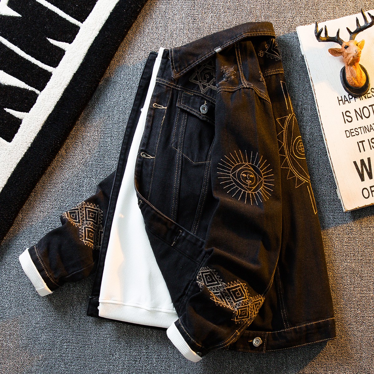 Kuraishi Yishu trendy brand American heavy industry embroidered denim jacket men's spring and autumn new lapel casual jacket clothes