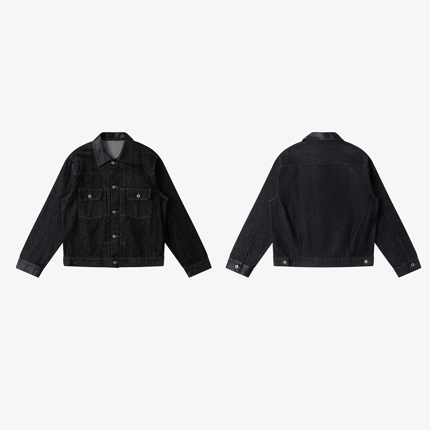 NO LOGO / American Pharmaron Cone black feather patchwork lambskin minimalist retro lapel denim jacket