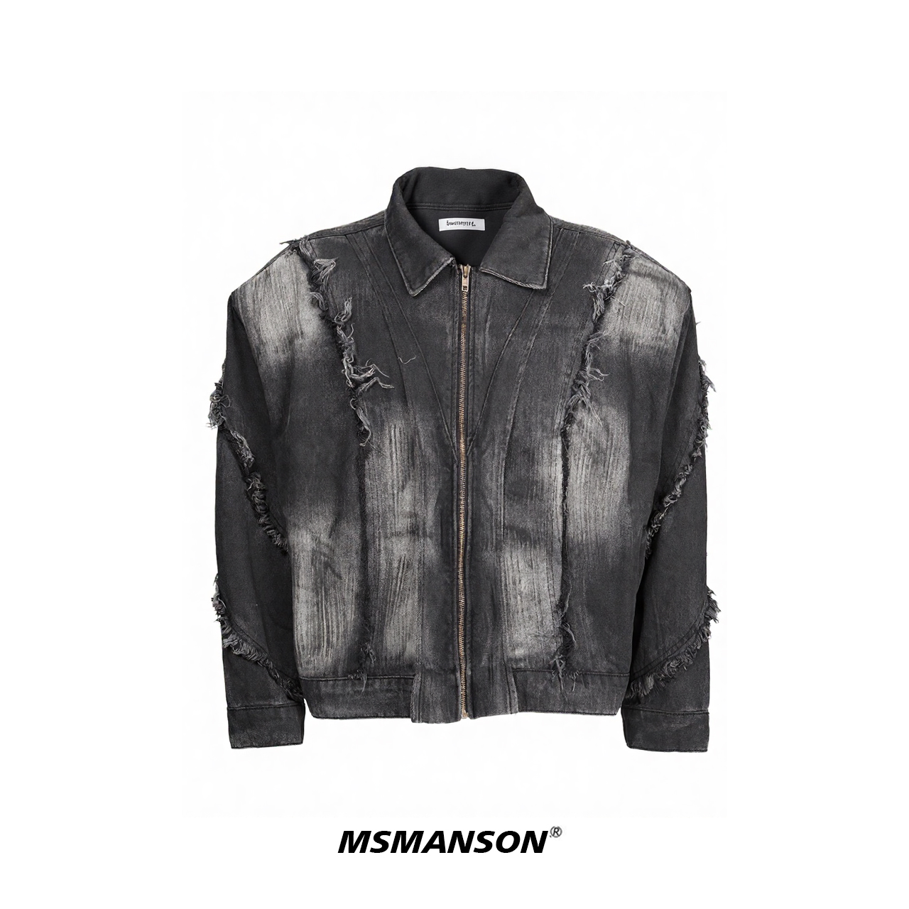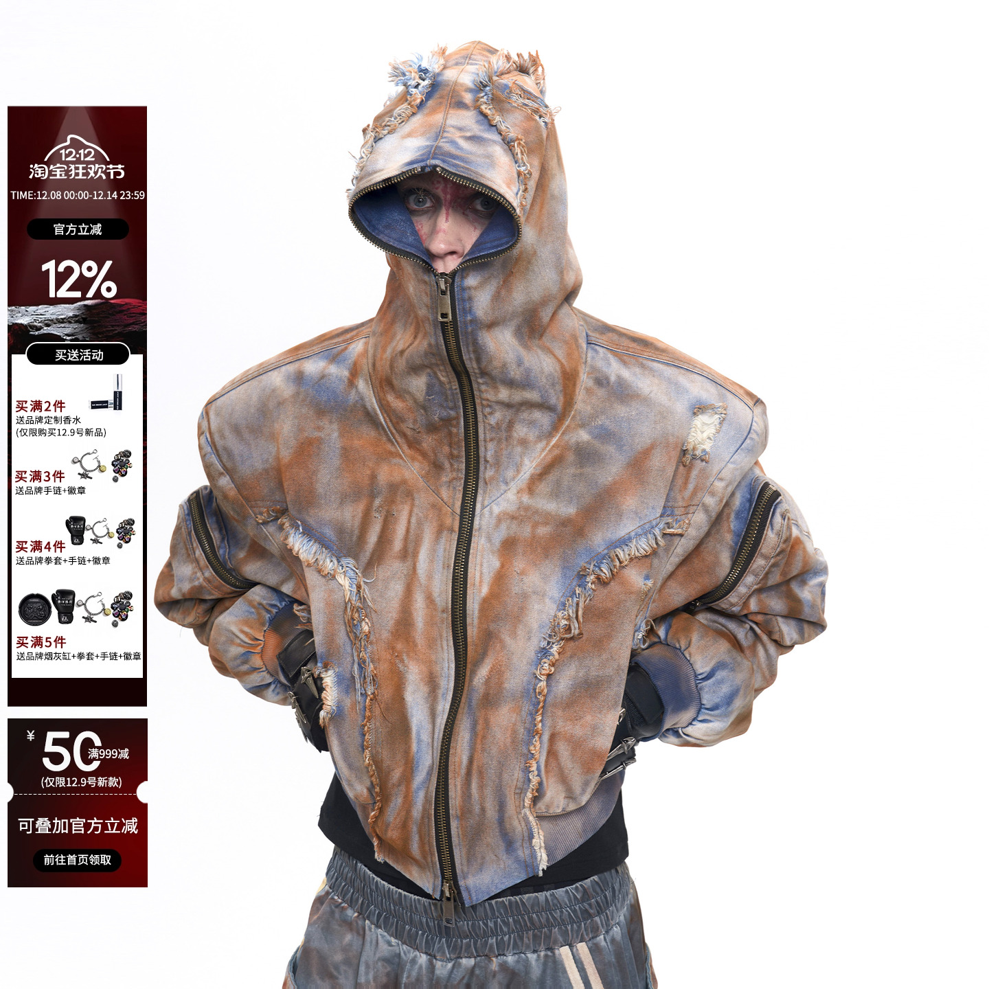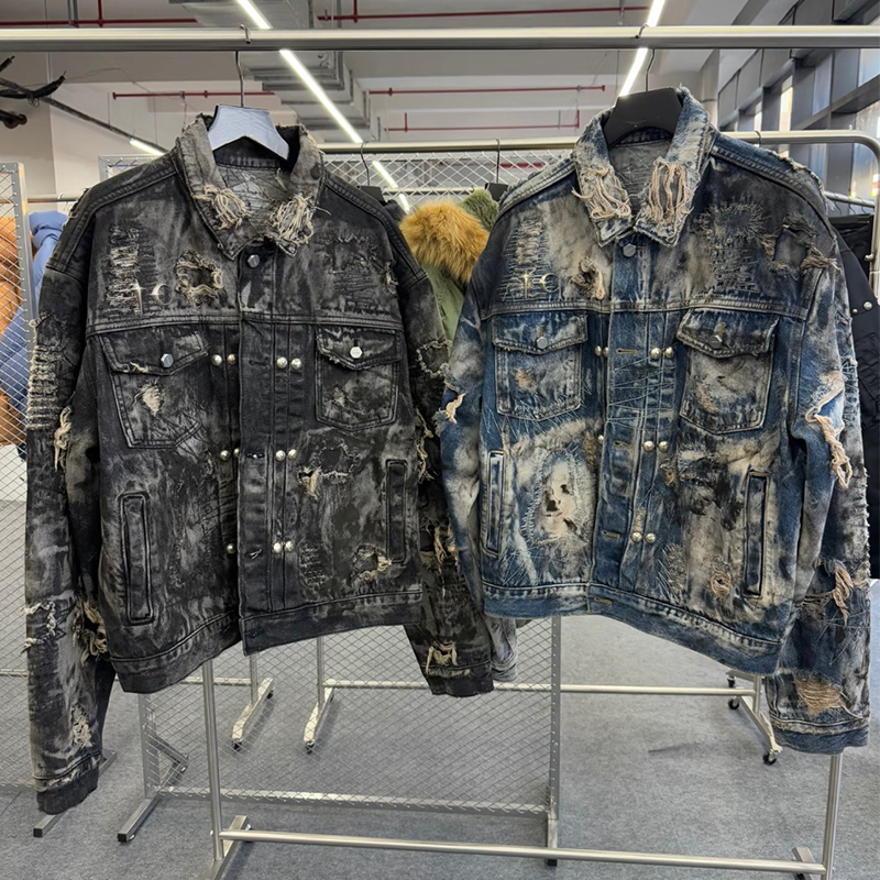 THUG CLUB heavy wasteland feng shui wash old big destruction erosion stain patch denim jacket jacket