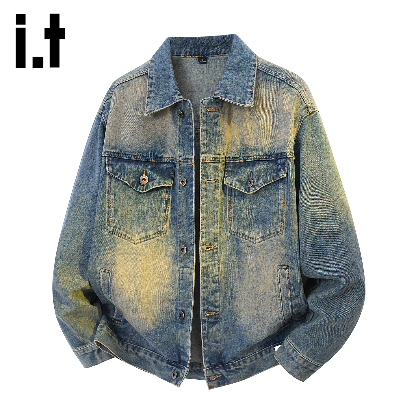 i.t: CHOCOOLATE Vintage High-End Denim Jacket Men's Spring and Autumn Multi-Pocket Plus Size Versatile Cargo Jacket
