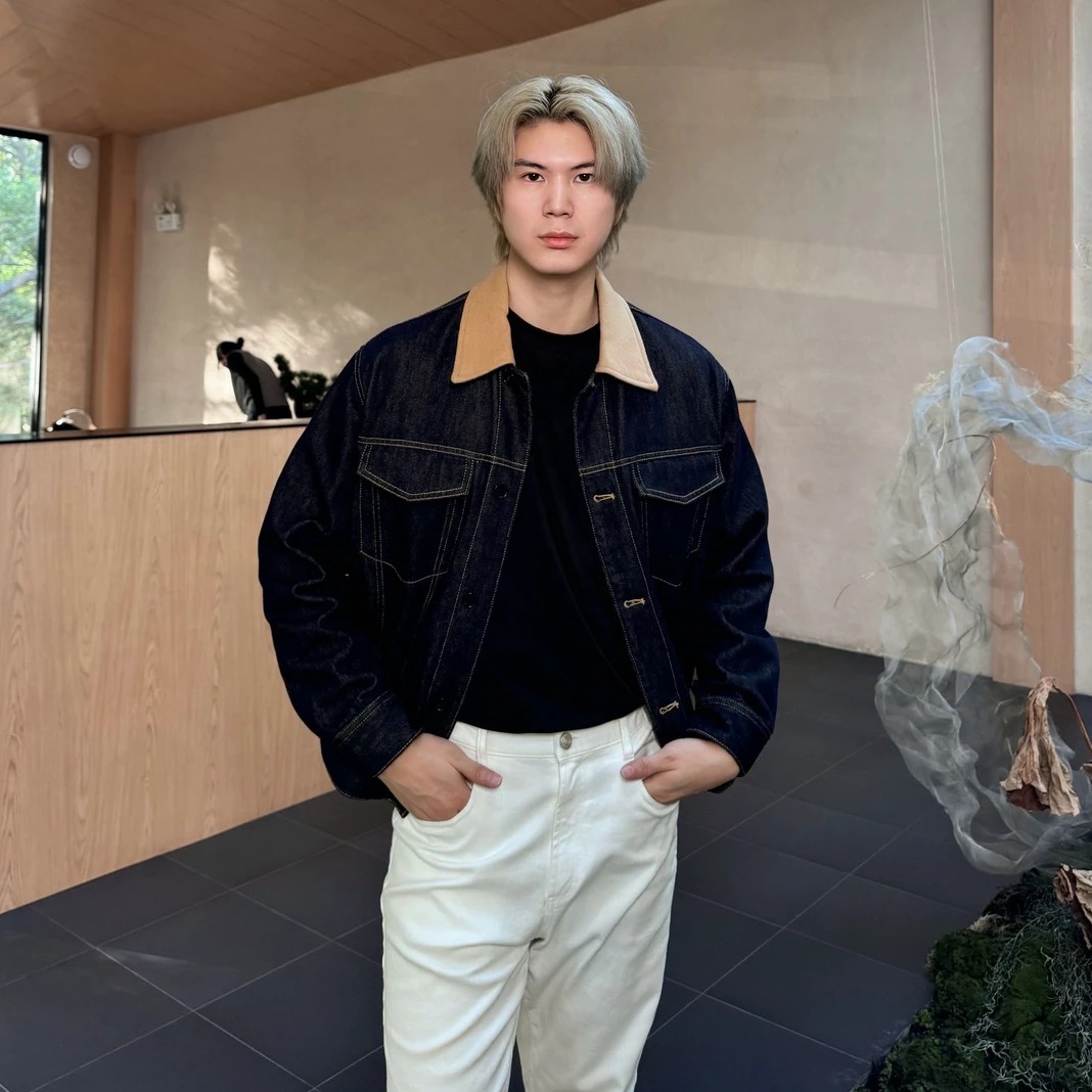 【Ye Bold】Xiaobei's same Australian fur-collared original cow set Loro46000 flannel-lined denim jacket