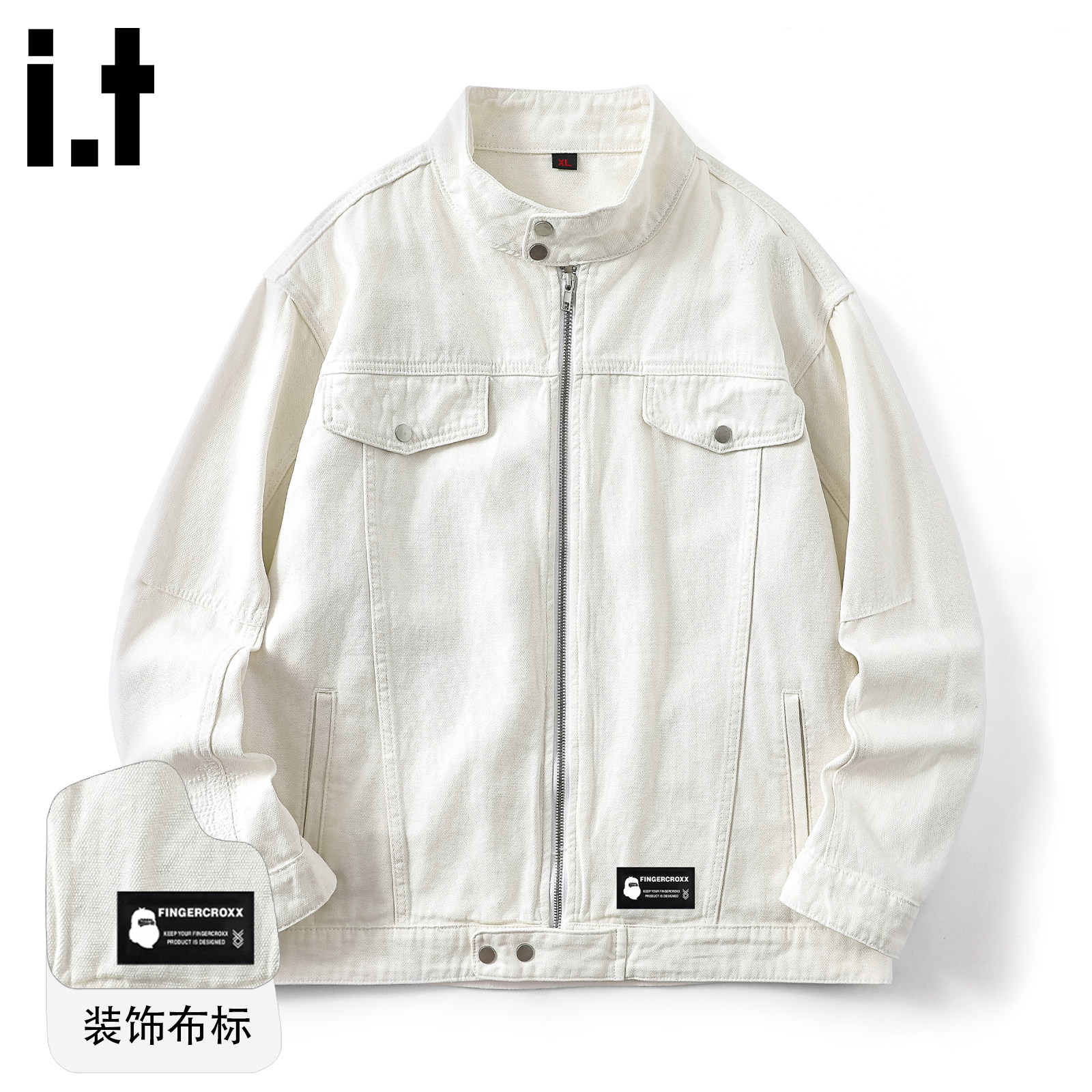 it: FINGERCROXX American Denim Jacket Men's 2026 Spring and Autumn Versatile Stand Up Collar Loose Zipper Jacket B