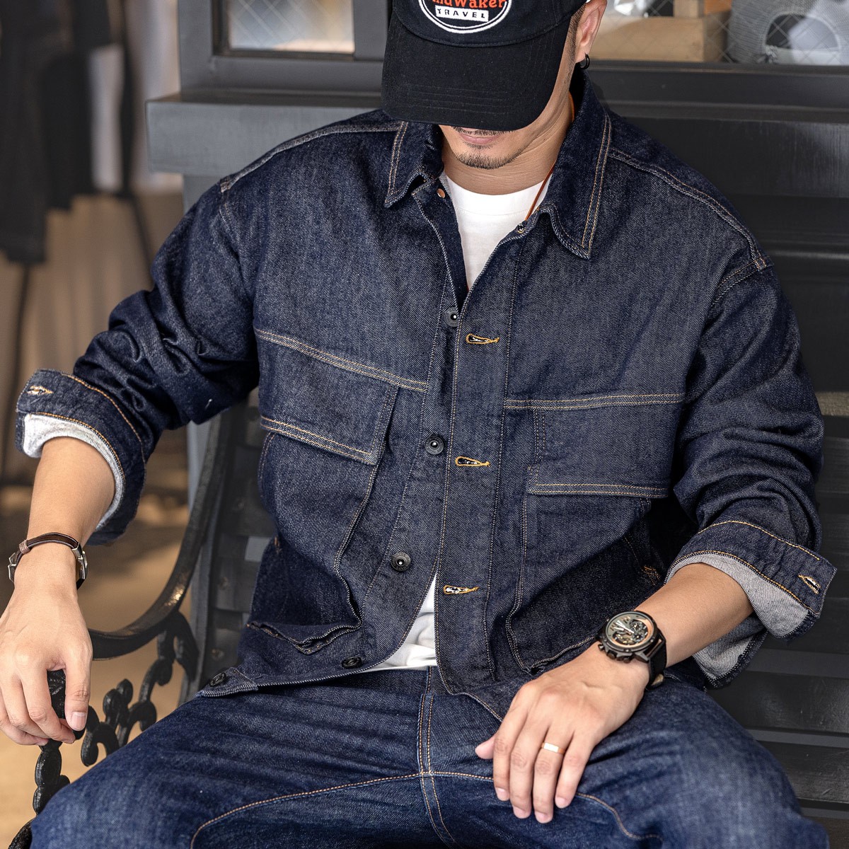 Kuraishi Kazuki vintage red ear denim jacket male ruffian trend spring and autumn cargo jacket lapel jacket