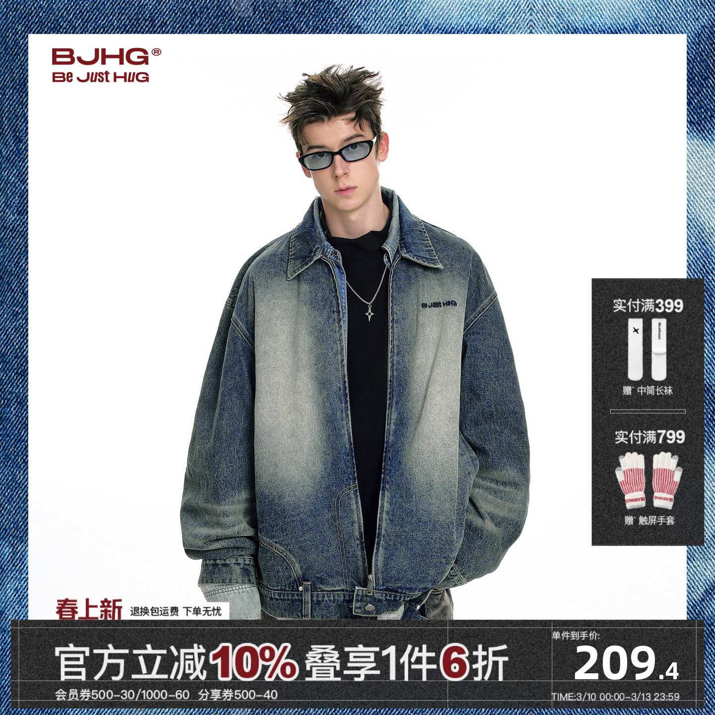 BJHG reckless denim jacket men's winter trendy shirt loose American vintage washed high street jacket women