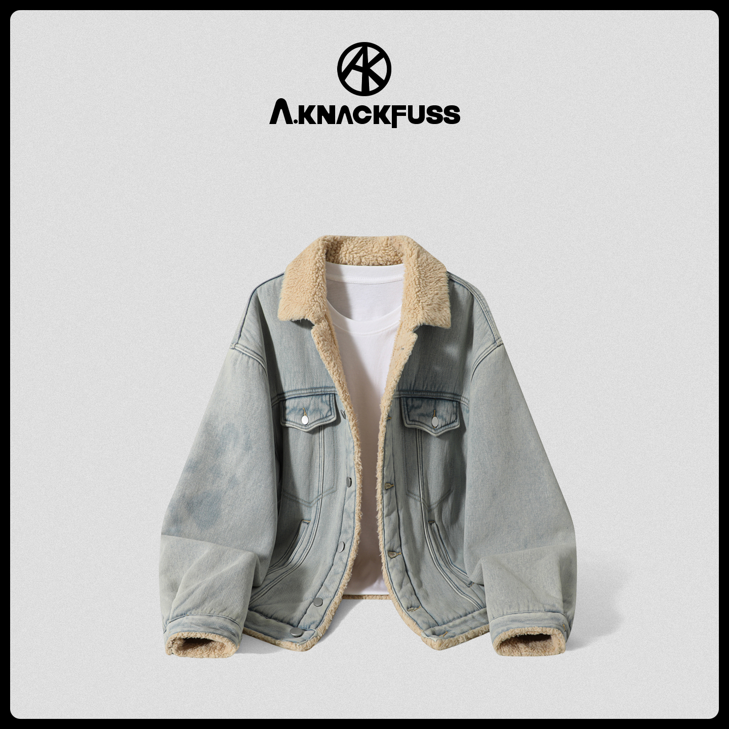 Dignified A.KNACKFUSS designer brand American retro washed lambswool denim jacket for men