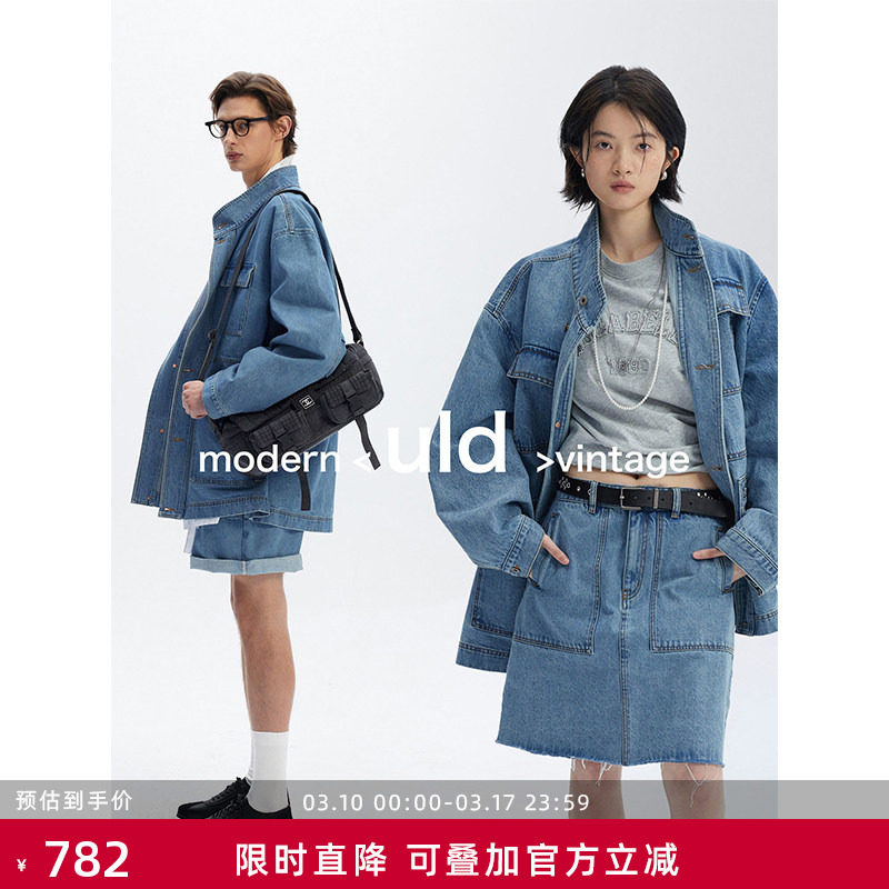 Vintage Bahn style couple washed distressed denim co-branded jacket loose-fitting casual top